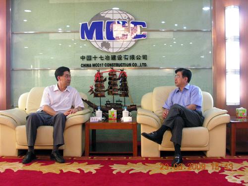 6月23日下午,中国机械设备进出口总公司(CMEC)总裁贾志强、中国机械设备进出口总公司第六事业部总经理尹志新,在马鞍山市副市长郑超陪同下来十七冶访问,十七冶董事长、党委书记康承业在公司总部亲切会见了CMEC总裁贾志强一行,宾主进行了热情、诚挚、友好地会谈。