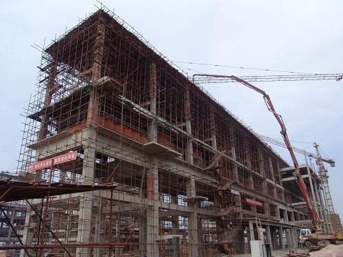 配料室是长154.5m、宽8.5m钢筋砼框架结构,是华菱湘钢二烧工程配料系统,也是土建工程量最大的单位工程。主体结构层楼面标高为:+7.9m、+13m、+18m、+26.6m。共有52根矿架柱组成。轨顶标高+25.3m,17个钢结构矿槽,矿槽斜段上口标高为13m,直段上口在18m平台梁底,附跨宽度6m.施工难度大,工期紧,穿插、交叉施工多,危险源多。为确保安全、促进度、抓质量保工期,项目部秉承艰苦奋斗、诚实守信的精神,发扬高效严谨、精细务实的企业作风。进行了认真地分析编制施工计划,落实安全制度,责任到人,调整劳动力资源和工机具,合理安排作业时间,经过 4个多月的紧张施工,提前10天实现配料室结构封顶,为后序设备安装创造条件,在质量、安全、文明施工等方面,受到甲方的称赞。