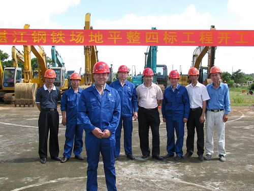 开工仪式由十七冶湛江大钢工程项目经理正清主持,随着公司总经理助理叶群彬下达了开工指令,顿时工地上鞭炮齐鸣,机声隆隆。挖土机挖出的第一斗土,象征着湛江钢铁场地平整4标工程已经进入到实质性施工阶段。