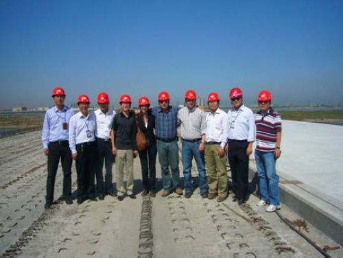 哥伦比亚客人先后视察了桥面施工现场和箱梁预制厂。在听取项目经理胡应林对工程的技术标准、质量和安全管理、进度控制等方面的介绍时,不时微笑并点头示意,临行时还连说“Very good,Very good,Welcome to Colombia.”