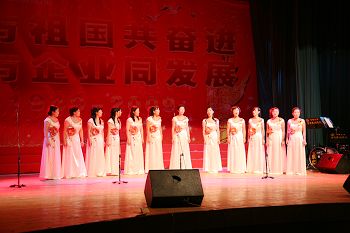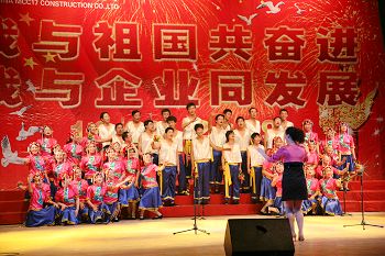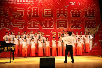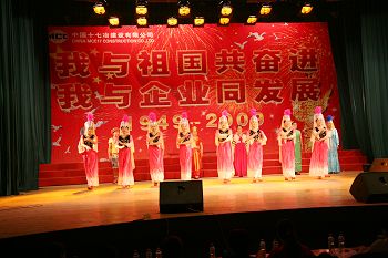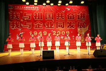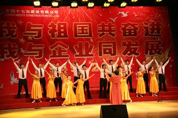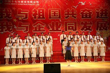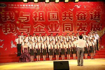 演出在歌伴舞《中国大舞台》中拉开序幕。科技公司的大合唱《大中国》、十七冶医院的大合唱《祖国颂》热情地赞美祖国、歌颂祖国。工程管理公司合唱《祖国不会忘记》唱出了好男儿的真本色;女声小合唱《思念》,深情地表现了风电公司女员工们的真挚情感。大合唱《保卫黄河》在物流与装备成套公司员工声情并茂的演唱中,昂扬振奋。总部机关的大合唱《瑶山夜歌》形象地演绎了瑶家儿女庆祝丰收,歌颂爱情,婉如立体的诗。