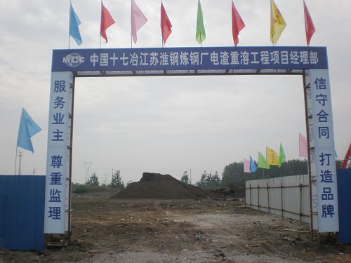 江苏沙钢集团淮钢炼钢厂电渣重熔工程位于淮钢南厂区,由主厂房系统、水处理系统、除尘系统和供辅系统组成。该工程由十七冶机电公司中标,十七冶路桥公司承建土建项目。两个二级公司在淮钢原料场项目首次实行合署办公,通过双方的努力,取得良好的效果。两公司在本工程再度联手,决心为十七冶在淮钢长期滚动发展再作贡献!