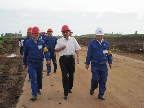 康董事长首先听取了正清对湛江钢铁场地平整四标工程的最新进展和后期安排情况的工作汇报,他听后十分满意,并勉励大家要再接再厉,发扬“高效严谨、精细务实”的企业作风,提高项目管理水平,保质按期完成任务,不断提升十七冶的客户形象。正清表示湛江钢铁工程场地平整四标工程是公司南海战略的桥头堡,项目部定会通过扎实的业绩和良好的形象树立十七冶品牌,不辜负康董事长和公司领导的关心和支持。