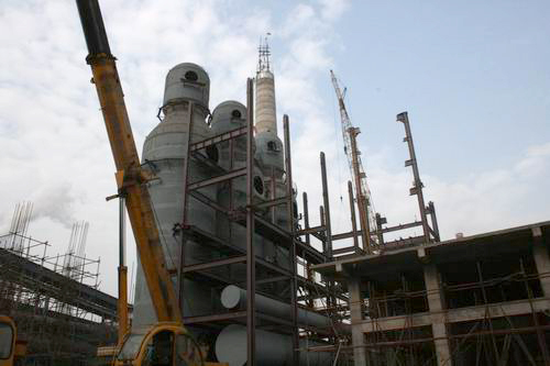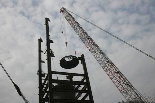 该高炉由北京明诚设计,高31.3m,重288吨,分为17带。自从9月13号开始第一吊,在机电公司领导的高度重视下,项目经理部和担任主攻任务的机装四处制定详细的安装计划,发扬“高效严谨、精细务实”的企业作风,经过45天的“白加黑”连续作业,克服图纸、原材料及冷却设备严重滞后等困难,圆满完成了高炉封顶的重大节点,赢得了业主的高度赞扬。