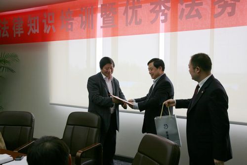近日,公司举办了“法律知识培训班暨优秀法务员表彰会”,公司董事会秘书、总经理法务助理汤小建,法务部全体员工及公司兼职法律事务管理人员和合同索赔人员三十余人参加了会议。
