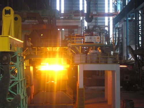 8月7日晚8时整,随着东方特钢总经理刘晓亚一声点火令下,鞭炮齐鸣,三根巨大的石墨电极插入电炉炉体中,电弧如同天空闪电一般,现场一片欢呼声。经过几个小时的冶炼,在8月8日凌晨1点58分生产出第一炉钢水,钢水经过LF炉的进一步加料冶炼转至连铸,最终成型为业主需求的合格钢坯。这是十七冶全体参战职工克服困难,发扬企业精神,共同努力的结果。业主刘总经理激动地对在场的十七冶同志连声说谢谢。