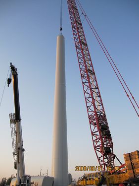 这次开工的风电项目共由13台维斯塔斯V90—1.8MW/2.0MW风力发电机组组成。主要包括塔筒、机舱、叶轮吊装;风力发电机组内部电缆敷设、电缆头制作、环网柜安装、试验调试及连接;光缆敷设、光缆接头制作接地等。