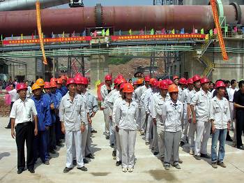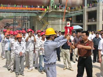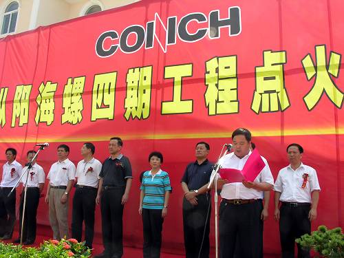 青山环抱下的枞阳海螺工程现场,标语高悬、彩旗猎猎,十七冶人用辛勤劳动建成的四期A线工程犹如一条即将腾飞的巨龙,蔚为壮观。9月5日上午,“枞阳海螺四期工程点火仪式”在这里隆重举行。