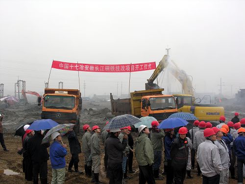 开工仪式由十七冶长江钢铁公司技改工程项目经理吴民主持。长江钢铁公司技改工程副总指挥李晓南下达了工程开工令。中冶华天总经理助理李传宝,马钢设计院监理公司总监吴光华与十七冶副总经理喻世功,十七冶机电公司经理唐克斌和党委书记周美初等领导同志以及各参建单位代表出席了开工仪式。
