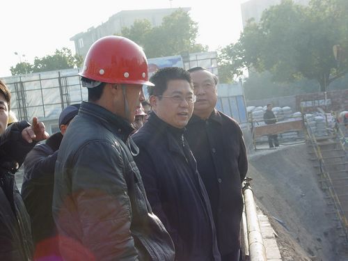 在听取了项目经理张吉来的汇报后,卢仓报书记对十七冶海螺大厦特大基坑的土方挖运、大孔径桩基、裙楼底板防水、钢筋绑扎施工的进度、质量和安全等工作给予了充分肯定,并对现场的文明施工进行了点评。他说:“我七月份来你们工地,现场清洁卫生,施工井然有序。五个月后的今天,仍然保持着良好的文明施工状态,这就是十七冶国有企业科学管理素质的体现”。卢书记还对工程是否需要政府协调等问题进行了仔细询问,表达了芜湖市地方政府对参加芜湖经济建设的央企的亲切关怀和问候,并勉励该项目部继续努力,打造精品,进一步弘扬MCC和十七冶品牌。