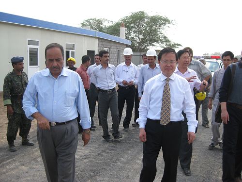 巴吉尔水泥厂是利用我国援外优惠贷款承建的项目,规模为日产2500吨熟料,年产25万吨水泥,建成后将是也门最大的水泥厂。刘大使在认真听取了巴吉尔水泥厂领导的介绍后,在水泥厂厂长Abdul Karim Horab、中机现场经理张剑的陪同下视察十七冶施工现场及生活营地,对十七冶在建工程建设情况给予了充分的肯定。他说:“巴吉尔水泥厂扩建工程是我国在也门承包的最大的工程项目,你们要加强与业主、监理的沟通与合作,促进项目按期顺利进行,积极推动中也双方的经贸合作。”