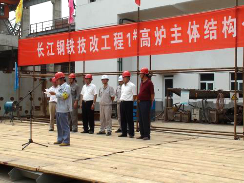 长江钢厂项目部举行1号高炉主体结构合拢仪式