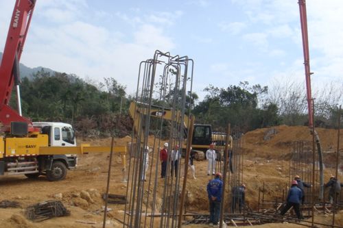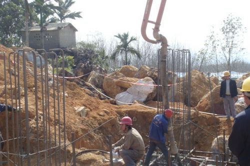 海南保亭七仙岭索道工程基础混凝土开始浇筑