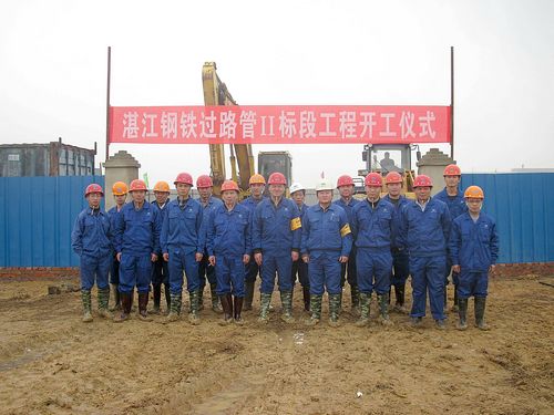 过路管标段工程是十七冶继湛江场平四标工程、西南排洪沟工程之后,在湛江钢铁项目中承建的又一项重要工程。湛江分公司经理正清在开工仪式上要求,项目部全体员工及参建单位要继续发扬“高效严谨,精细务实”的企业作风,在“七个坚持的原则下,固本创新,发扬团队精神,倍加努力,勤奋工作,确保任务圆满完成。