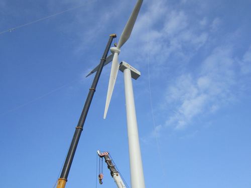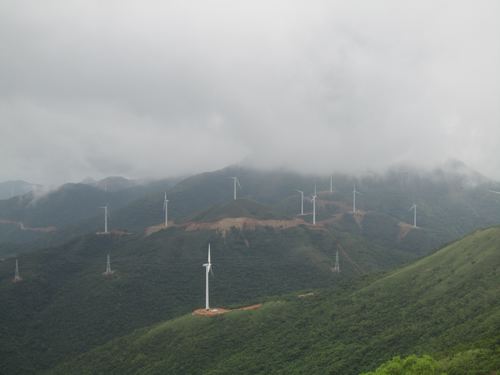 该工程位于广东省阳江市阳西县沿海的龙高山上。工程包括道路设计、道路修建、38台风机的基础浇筑和吊装任务。自去年4月开工以来,先后遇到了征地、山体坡度陡、设计变更、气候复杂多变等因素的困扰。项目部精心组织,全体参战人员齐心协力,抢在南方雨季来临前完成吊装任务,顺利实现了发电计划,得到业主充分的肯定。