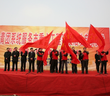 34下午,全市共青团服务重点工程建设工作启动仪式在我公司金福花园安置房项目建设工地现场隆重举行。