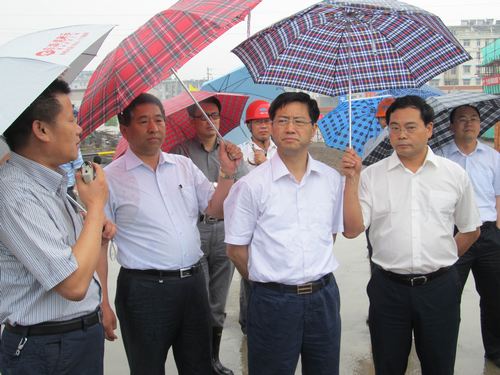 6月14日下午,马鞍山市委书记郑为文在市住建委、雨山区等相关部门和单位领导的陪同下,冒雨视察了正在紧张施工的映翠花园三期保障性住房工程项目。 郑为文书记兴致勃勃地察看了施工工地,询问了工程进展等情况。在听取了雨山区负责人对工程概况和进展情况的介绍后,郑为文书记对工程进展表示满意。他要求各方积极配合,确保工程的实施进度和质量,把映翠花园三期工程建设成优质工程、精品工程。