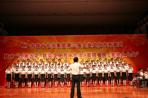 在马鞍山市举办第27届“江南之花”群众文化节期间,中国十七冶集团借举办第三届企业文化节契机,举办了马鞍山市第27届“江南之花”群众文化节17场专场演出中的首场演出——十七冶“歌唱祖国喜迎十八大”文艺汇演。公司10支合唱队700多名员工的精彩演出,获得了市委、市政府和有关部门的高度称赞,社会反响强烈,从而获得了市委宣传部和市文化委的表彰。