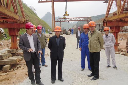 在施工现场,王建国董事长对全线路基项目的桥梁工程、隧道工程及路面项目的摊铺质量、设备的运行情况等进行了细致查看,仔细了解工程重点部位的质量、安全措施、配比的参数等情况,对两项目部的安全管理、施工质量和现场管理给予了充分肯定。王董事长强调,施工环境再苦,员工的生活不能苦;项目管理要厉行节约,但安全投入必须保障;工程再艰难,质量要保证;要做一个工程,创一个品牌。