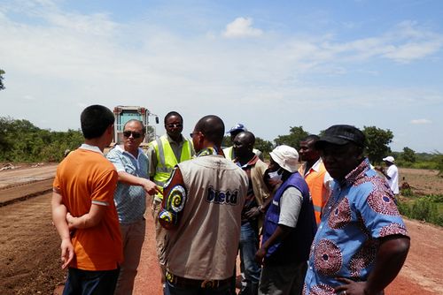 当贝利和古丽巴力代表一行,从130公路项目起点至终点进行了全程巡视,并对项目部驻地建设、沥青搅拌站及工地试验室等进行了实地考察。西非发展银行代表对工程总体进展和项目运作情况表示非常满意,对项目部能在力所能及的情况下对沿线政府百姓进行一些援建表示赞赏。当
