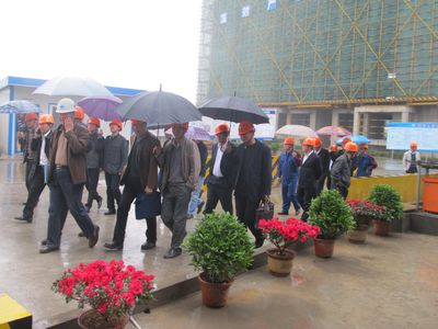 会前,与会人员冒雨一同到中冶置业(安徽)公司承建的当涂经济开发区公租房二期工程进行了现场观摩。