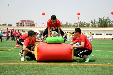 中午1230分,队员们在看台上简单地吃了点面包,稍微休息了一会就又出现在男女混合运转乾坤和男女混合人桥接力赛场上。面对从未接触过这两项比赛且又都是第一个上场的不利局面,队员们在经过短暂的模拟演练和商讨对策后,便开始发起挑战。尽管大家相互配合默契,但毕竟没有经验,最终未能获得较好的名次。