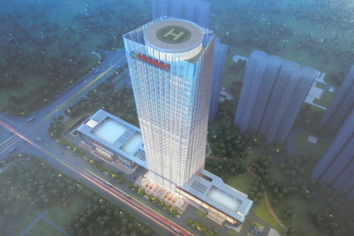 本工程由中冶置业(安徽)有限责任公司代建,地址位于马鞍山市太白大道与东湖路交叉口西南侧,东临马鞍山万达,南接深业华府;建筑群由主楼及东西裙楼组成,地上37层,地下2层,总建筑面积10万平方米,建筑高度164.35米;计划工期三年。