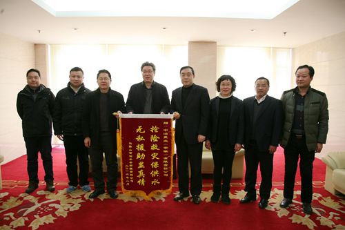 224上午,马鞍山市建委副主任阿克斌、马鞍山首创水务公司总经理杨邦华一行到中国十七冶集团赠送锦旗,对公司在春节前支援市政府和水务公司开展老旧小区大批冻裂水管抢修工作,表示衷心感谢。公司副总经理蔡进代表公司接受了锦旗并致谢。