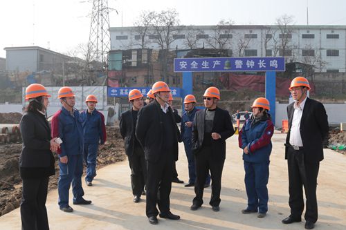 在滨江花园安置房施工现场,喻世功董事长一行实地查看、了解了工程建设情况,并提出了具体工作要求。