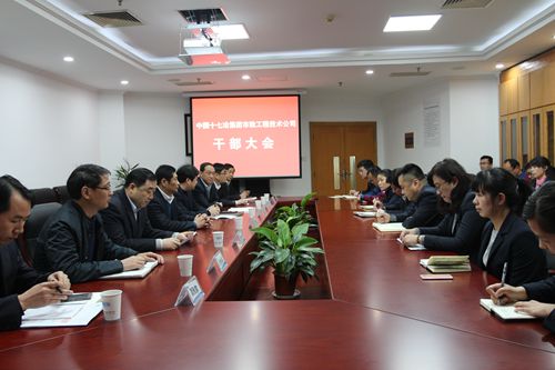 3月11日,中国十七冶集团对路桥工程技术公司、市政工程技术公司、新型建筑制品与物流公司领导班子进行了调整充实。公司董事长、党委书记喻世功,总经理、党委副书记刘安义,纪委书记、副总经理蔡进,副总经理王振堂、陈阳,组织文化部部长杨绍凤、人力资源部部长魏致家出席了三家公司的干部大会。