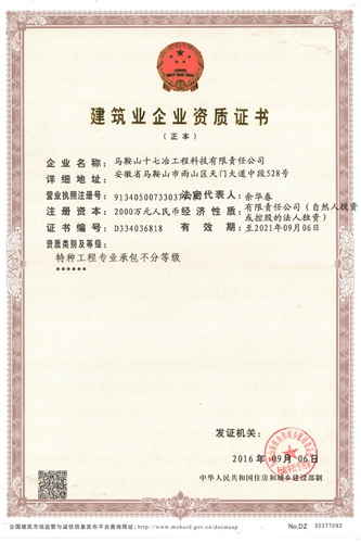 日前,经建设行政主管部门批准,十七冶工程科技公司顺利取得了特种工程专业承包施工资质,进一步提升了公司技术实力,促使公司向更高技术水平迈进了坚实的一步。