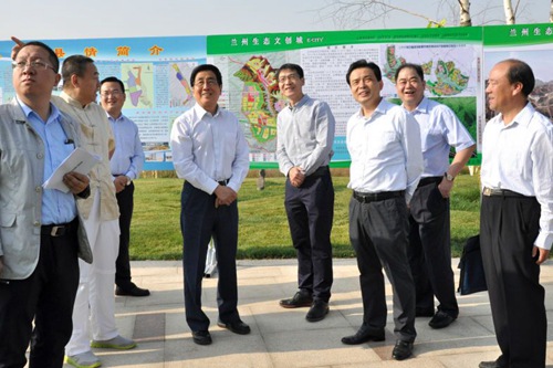 林铎省长一行来到兰州市皋兰县生态文化创新城重点项目现场一线开展督查调研,查看了正在紧张施工中的生态文化创新中线连接线项目建设施工现场和连接安宁区与生态文化创新城的市政道路建设。林铎省长对施工现场安全、质量、进度、环境保护等各方面工作给予了表扬,充分肯定了整个生态文化创新城“变荒山为宝地”的建设工作和总体规划,并对后续工作提出了宝贵意见。