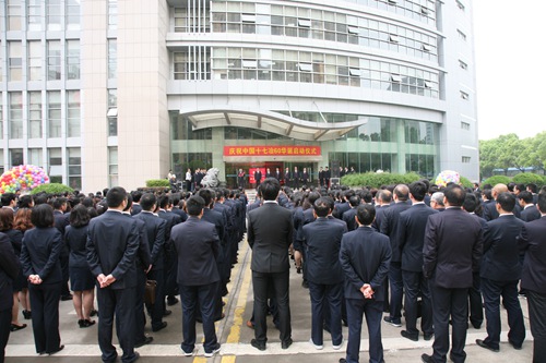 仪式伊始,护旗手迈着矫健的步伐将五星红旗护送到位,在雄壮嘹亮的国歌声中,鲜艳的五星红旗、中冶司旗和十七冶司旗在现场所有人庄严的注视下徐徐升起,爱国爱企的激情和自豪感在员工心中激荡。