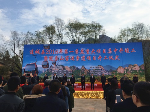 14日,由福建连城县人民政府主办的“连城县2018年一季度重大项目集中开竣工暨冠豸山客运索道开工仪式”在冠豸山风景名胜区竹安寨景区举行,中国十七冶集团有限公司冶金工程技术分公司承建的连城县冠豸山客运索道项目开工。福建省旅游集团党委副书记、总经理刘洪建,连城县委书记钟勇强分别致辞祝贺,省旅游集团党委书记、董事长陈扬标宣布连城冠豸山客运索道项目正式开工。仪式由连城县委副书记、县长吕素梅主持。