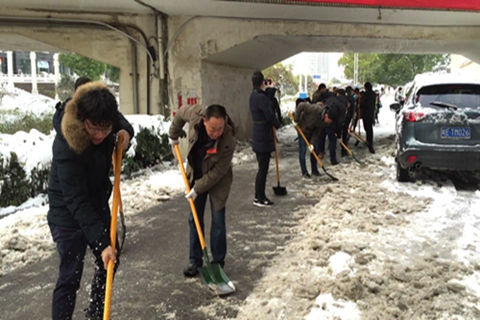 雪前,公司积极储备应急物资,将雨山路责任路段划分到总部机关及在马各二级单位,同时各工程项目做好脚手架、特种设备、宿舍区、基坑等区域的雪前检查。雪后两天时间,10辆装载车,14家单位,600余人次,公司组织了多次除雪,十七冶职工手拿铁锹、推雪板、推雪铲等除雪工具走上街头,参加到全市清扫道路积雪的行动中。