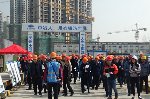 参会代表们一进入施工现场,立即被整洁的施工环境和规范的企业外化宣传所吸引,特别是扬尘在线监测及降尘除霾联动控制系统、雨(废)水收集再利用系统、塔吊限位防碰撞系统、工地互联网远程视频监控系统、建筑工艺样板展示及VR智能安全体验系统等方面在现场施工中的运行和效果,受到了参会人员的连连好评。大家在听取了项目负责人的详细介绍和现场观摩后与项目管理人员进行了深入交流,对十七冶作为央企所展现的实力和风采给以了很高的褒奖。