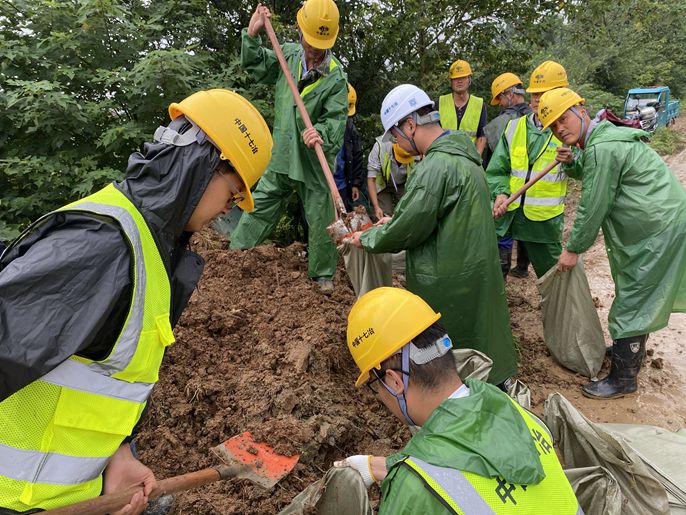 7月17日下午13时,项目部再次接到园区防汛办的求援电话,当涂县太白村福源自然村因长时间暴雨水位暴涨,村里千亩良田和部分房屋受到洪水侵害。得知消息的他立马拔掉输液针头,赶赴现场。由于雨水浸湿和蚊虫叮咬,他的身上出现明显的红斑,又痛又痒,前线指挥部领导劝他休息一下,他只是笑了笑说,“其他战友都在前线奋战,我怎么能退缩?”“大家不要蛮干,两两配合,分工合作,动作要快,时间不等人呐!”在他的号召下,项目部青年党员苗千千扛起土袋大步流星往前跑,在雨水与汗水的交融中,他的眼镜渐渐模糊,手上磨出一个个大血泡,流了不少血。在大家的齐心协力下,坝堤的防线终于成形,看着彼此高低的裤脚和布满黄泥的雨鞋,汗水和笑容泛溢在每个人的脸上。