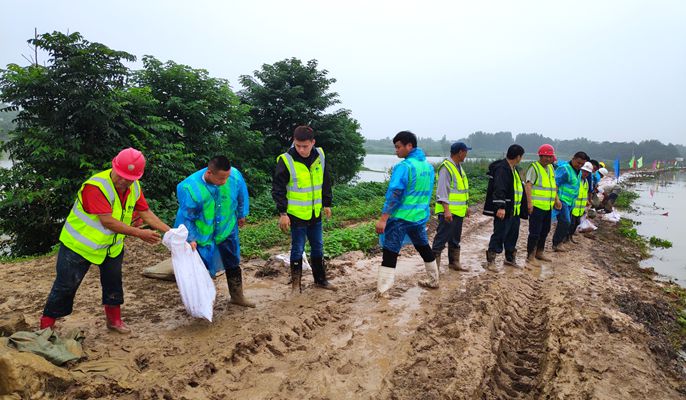 危机中又有危局,整个马鞍山地区的防汛工作千头万绪,市政府给的任务又重,陈远海总监常常顶着大雨奔走多地与各地方沟通联系。在得知“宁博一体化”项目的人员因为连续几日都在雨中干活,已经陆续有人出现感冒发烧的症状,人力出现不足的情况。7月19日,早上7点半,在陈远海总监带头上阵,临时抽调人员组建起一支70人防汛队伍,并出动抢险车辆7辆,携带了铁锹30把,麻袋400只,还有毛巾、纯净水等物资,前往博望丹新河抗洪抢险。
