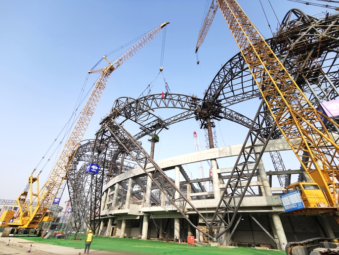 新华社全球直播兰州奥体中心项目钢结构合龙