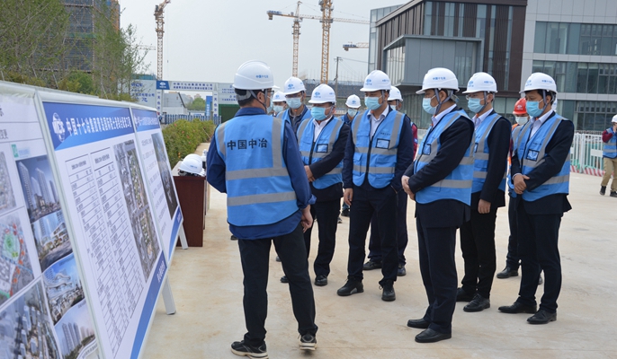 5月8日,中国十七冶集团董事长、党委书记喻世功和副总经理刘宇到青岛国际院士港综合配套项目调研指导工作。山东分公司党委书记邢飞,青岛分公司经理耿豪,山东分公司常务副经理胡德帅等参加检查。