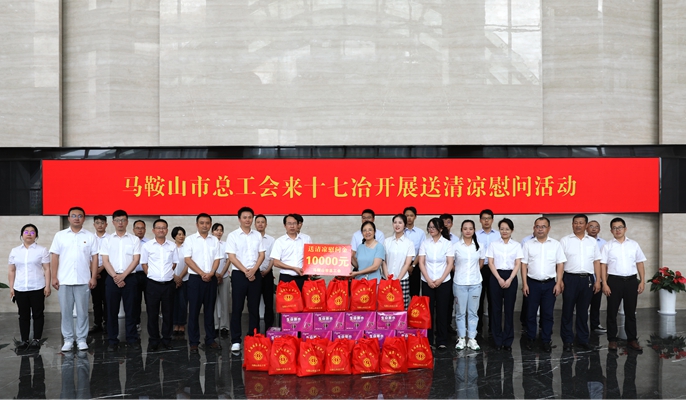 7月26日,马鞍山市总工会党组书记、常务副主席毛善群到中国十七冶技术中心大厦亲切慰问职工群众,为大家送上工会的关心与防暑降温用品,公司副总经理、工会主席魏致家参加了慰问活动。