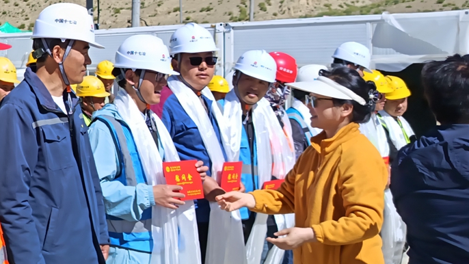 唐明英主席深入施工现场,详细了解当前工程进展、安全生产措施落实及职工生活保障等情况,代表西藏自治区党委、政府,向建设者们表达了深切关怀和诚挚问候并发放慰问金。唐明英主席充分肯定了十七冶在项目建设中积极吸纳当地藏族群众就业、促进藏汉职工协作的做法,对十七冶践行央企担当、驰援灾区建设和项目团队不畏艰难、连续奋战的奉献精神给予高度评价。她强调,灾后重建项目事关民生福祉和家园重建,各级工会组织将持续关注一线职工需求,帮助解决实际困难,项目团队也要进一步发挥工会组织桥梁纽带作用,注重通过技能培训、文化交流等方式,增强团队凝聚力,铸牢中华民族共同体意识。