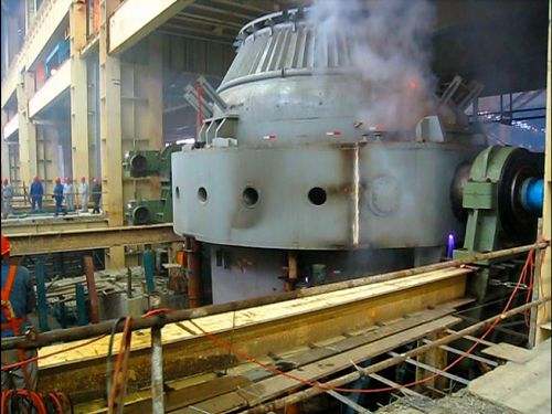 4月4日下午,由十七冶承建的江苏江阴兴澄特三期钢转炉炼钢、连铸工程,第一台120t 转炉本体,采用“组合法”一次顺利移动安装到位。