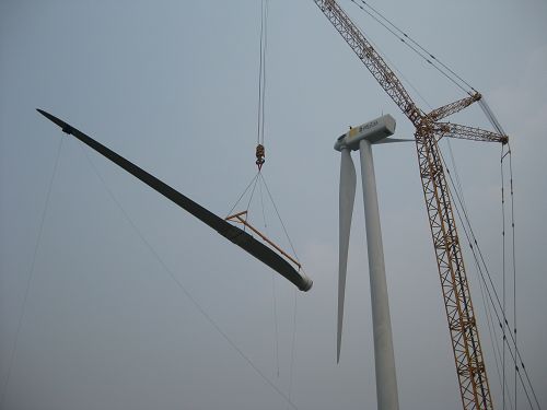 3月中旬山东蓬莱普降大雪,冰雪还未融化,紧跟着又是一场大雨,使得上山的道路泥泞湿滑,运输车辆载着60余吨的机仓在装载机的牵引下还是爬不上山头,施工难度非常大。为了确保工期,
