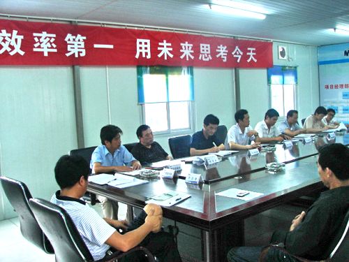 项目经理唐传平在会上下达了动员令,要求全体参战人员齐心协力、鼓足干劲,大干120天,确保B03栋高层在今年11月30日交房验收。项目副经理朱广剑围绕总体目标布置了近阶段工作的重点及难点,分解确立了四项考核项目及节点,并代表项目部与参赛单位签订了《B03栋建筑装饰工程劳动竞赛合同书》。参赛单位在会上也表态发言,要认真贯彻动员大会精神,服从项目经理部的安排,迅速组织人力资源,掀起大干高潮,坚决完成任务,确保总目标的实现。