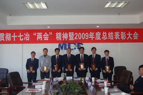 会上,王振堂总经理还分别与上海中冶轩和公司、南京中冶金泓公司、拆迁安置房项目部签订了目标考核及项目管理责任书,与各公司、项目部以及机关各部门签订了劳动竞赛合同;会议还表彰了2009年度先进集体、先进工作者和优秀共产党员。