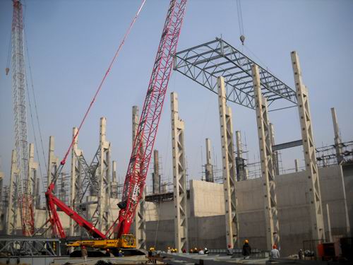 2月21日上午,伴随着喜庆的鞭炮声,大连特钢项目一次料场第一跨屋架成功吊装到位,它标志着该项目一次料场屋面系统进入了快速安装的重要阶段。