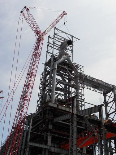 7月14日上午,吉钢二号高炉98米炉顶钢架顺利就位,为吉钢二号高炉本体大型钢结构安装完成奠定了基础。 进入6月下旬以来,冶金工程技术公司机装二处紧紧围绕工期节点安排,在项目部的精心组织指挥下,积极调配劳动力,合理安排作业时间,克服各种困难,仅用20多天便完成了74米以下炉身钢架、东西两侧上升管、E8支架、炉顶70米行车梁、93米以下上升管和98米炉顶钢架等钢构件的安装,受到了业主的好评。
