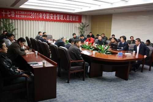 水泥(房屋)工程技术公司党委书记、副经理胡文奎在开课前要求各项目专职安全管理人员务实学习,学以致用。培训班聘请了马鞍山市劳动保障局等专家授课。培训的内容主要有特种设备安全管理及事故案例、临时施工用电安全管理、脚手架搭设安全管理、工伤保险和意外伤害保险等方面知识。