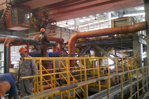 芜湖新兴铸管120tRH真空炉工程管道安装内容主要为蒸汽、净环水、浊环水、氧气、高炉煤气、中压氮气、低压氮气等共计6000米的介质管道施工。时至12月,天气寒冷,在原有工期紧、工艺复杂、工作面狭窄等难题下更增加了施工难度,为了保证RH真空炉能按期顺利进行热负荷试车,公司管道工程处积极制定冬季管道安装施工方案,严格依据方案实施技术、安全交底,各施工人员不惧寒冷,加班加点,掀起冬季施工大干热潮,赢得业主单位与设计单位的一致好评。